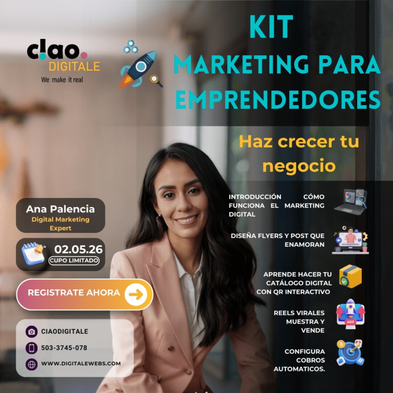 En este Workshop de 4 clases en vivo, no solo vas a mirar; vas a construir. Al finalizar, tendrás un catálogo digital profesional con código QR, sabrás editar tus propios Reels y tendrás tu sistema de cobros configurado para recibir pagos en automático. Horario: Jueves de 6:00 pm a 7:00 pm (PST / Hora del Pacífico)..